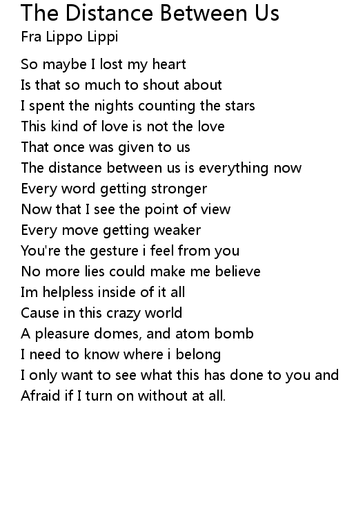 The distance between us is everything now |