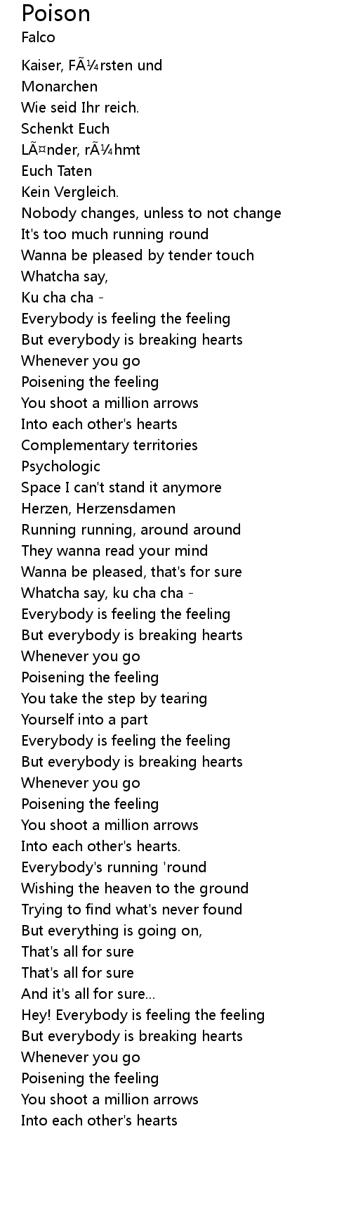 | Poisening the feeling | |