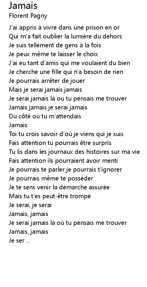 | Mais je serai jamais jamais | |