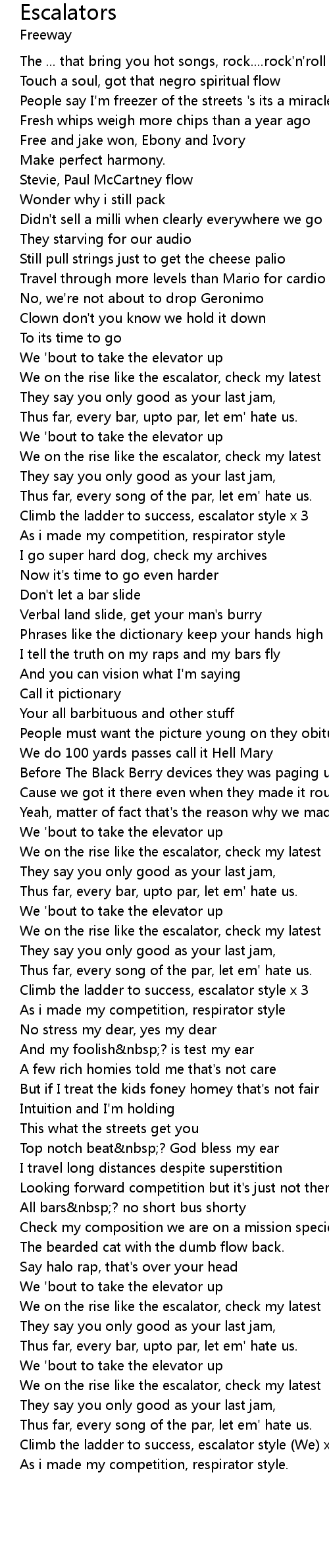 We on the rise like the escalator, check my latest |