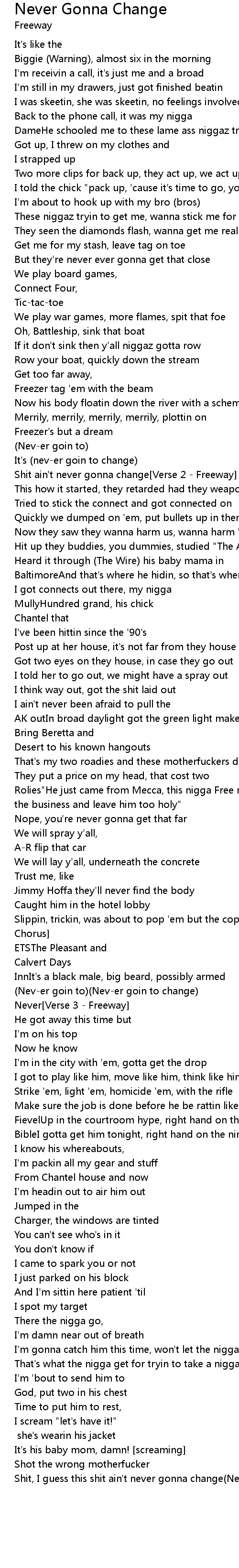 Shit ain't never gonna change[Verse 2 - Freeway] |
