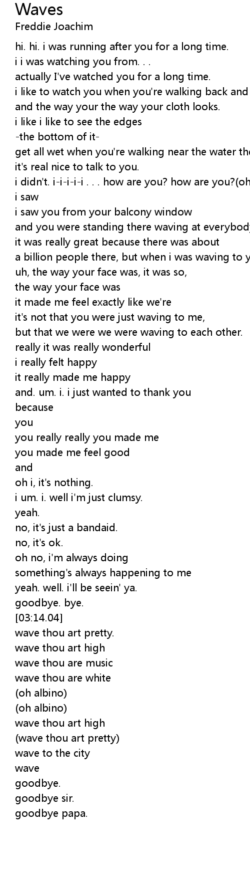 [00:38.76] i didn't. i-i-i-i-i . . . how are you? how are you?(oh albino)