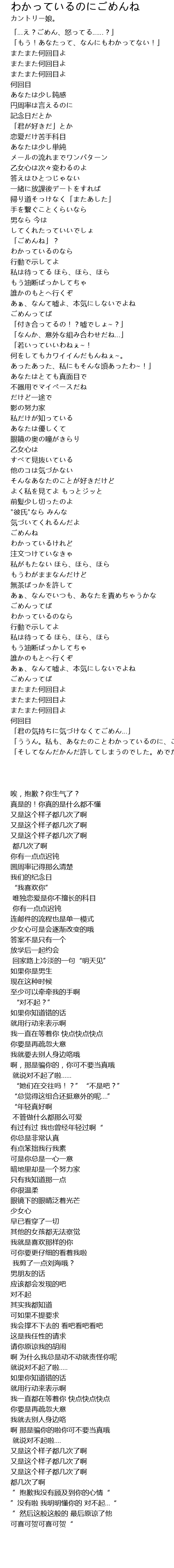 | 歌曲 | わかっているのにごめんね |