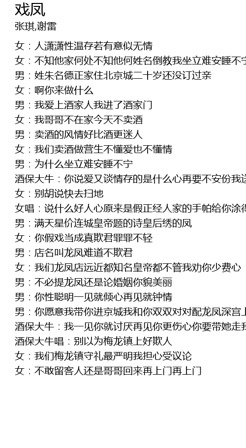 | 女:我们龙凤店远近都知名皇帝都不管我劝你少费心 | |