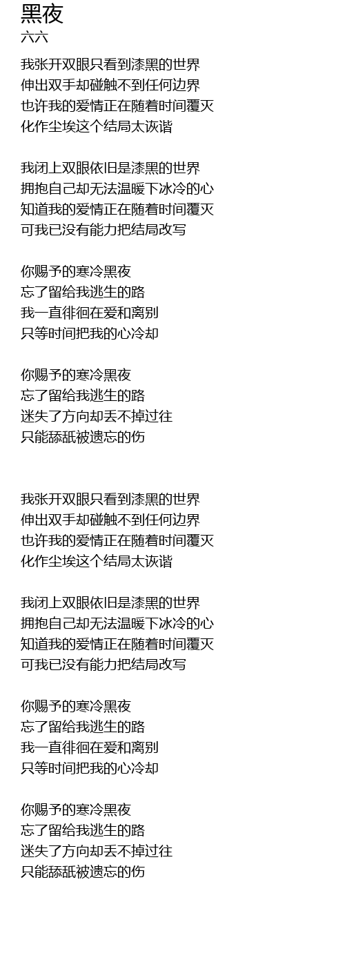| wǒ zhāng kāi shuāng yǎn zhǐ kàn dào qī hēi de shì jiè | |