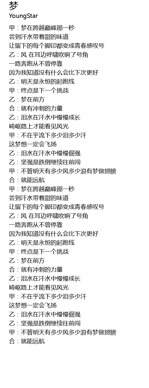 | 甲:不管明天有多少风多少浪有梦做翅膀 | |