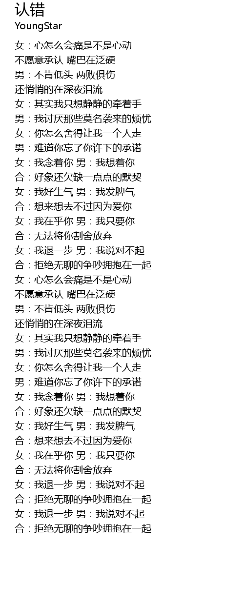 | nv: wo nian zhe ni nan: wo xiang zhe ni | |
