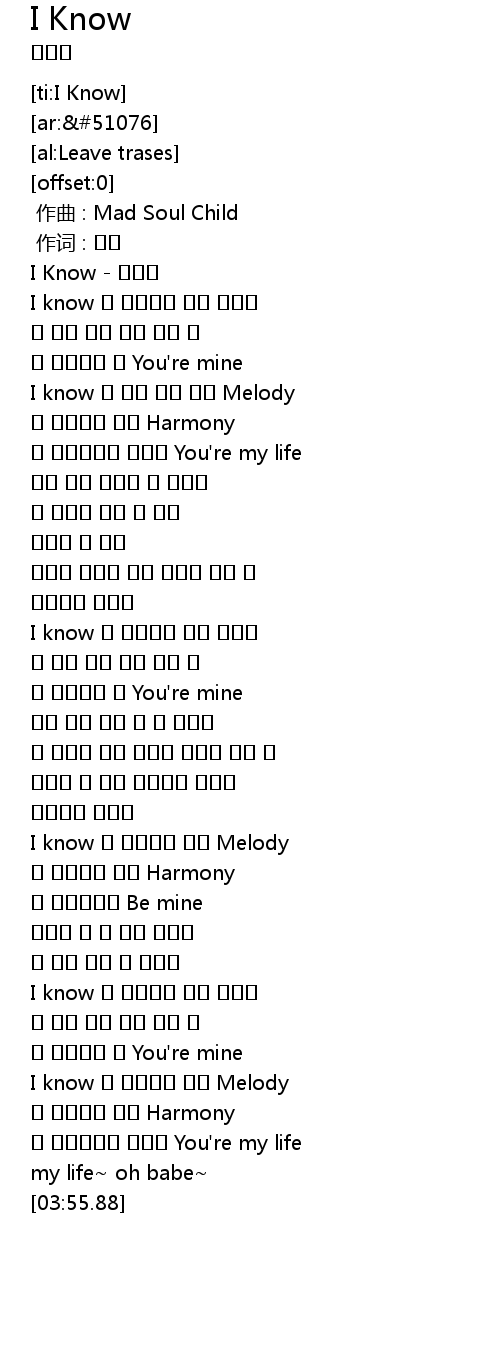 | [03:24.83] | I know 넌 붉은빛에 물든 Melody |