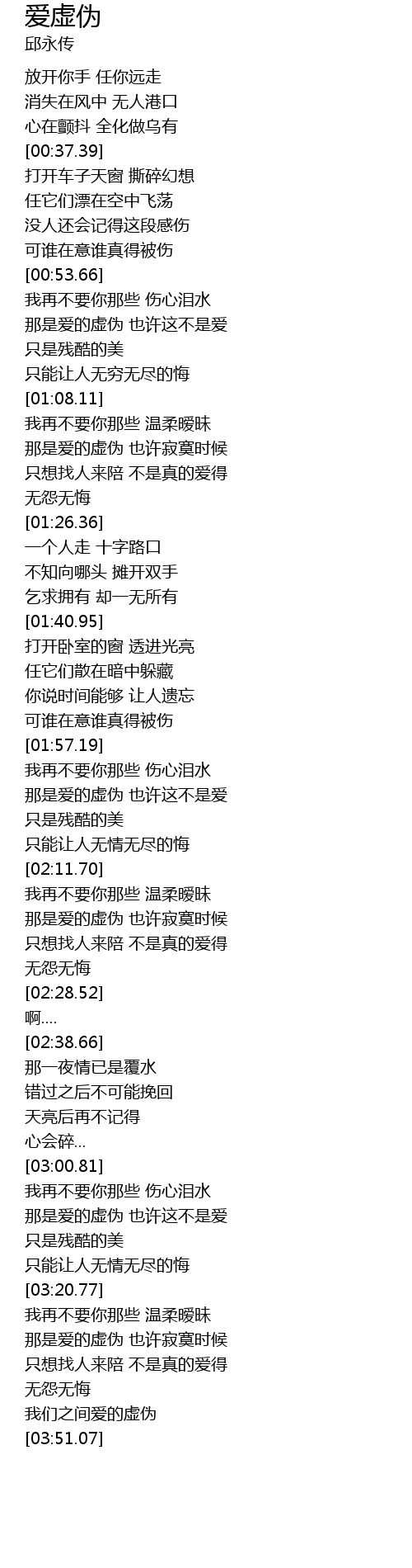 | [03:39.92] | 我们之间爱的虚伪 |
