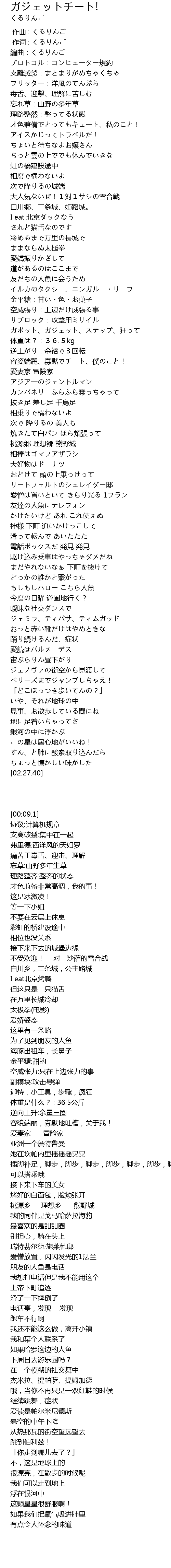 | [01:12.43] | ガボット、ガジェット、ステップ、狂って |