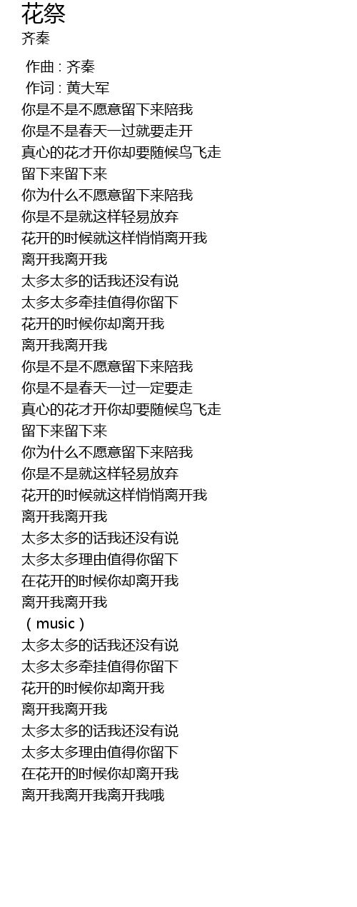 | [00:37.500] | 你是不是春天一过就要走开 |