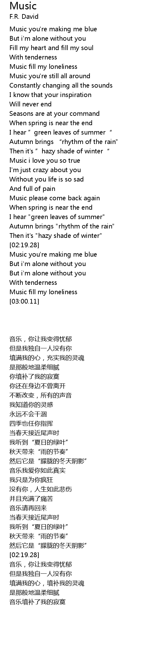 | [02:31.42] | Music you' re making me blue |