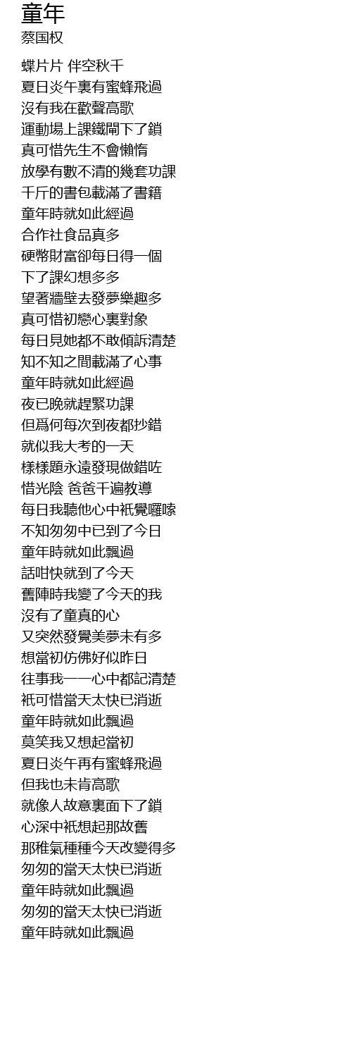 | [02:53.850] | 童年時就如此飄過 |