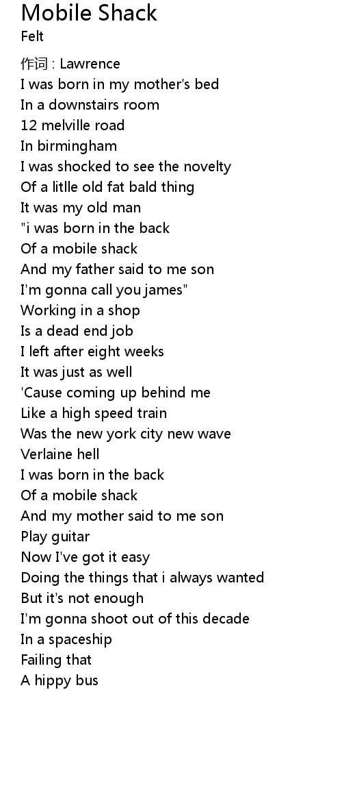 | 歌曲 | Mobile Shack |