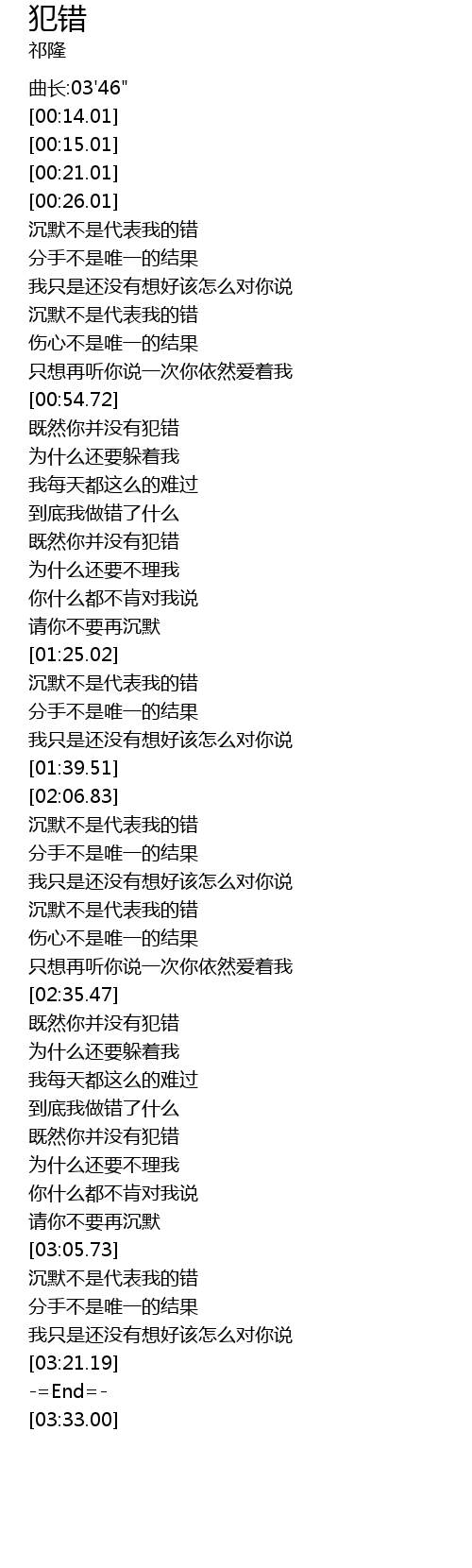 | [00:40.76] | chen mo bu shi dai biao wo de cuo |