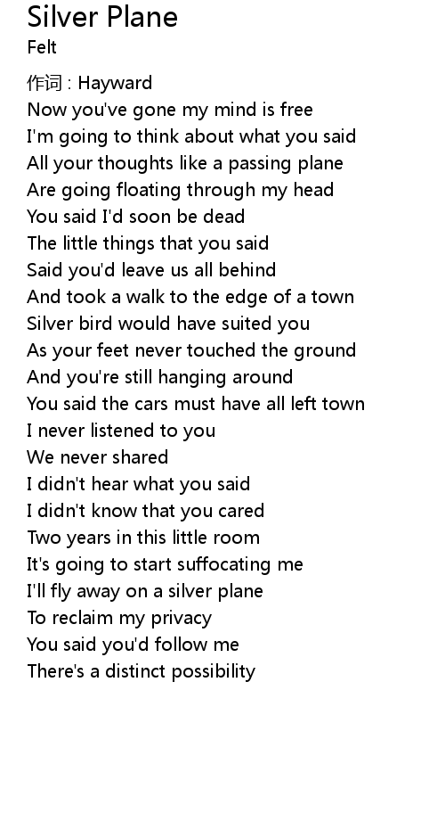 | All your thoughts like a passing plane | |
