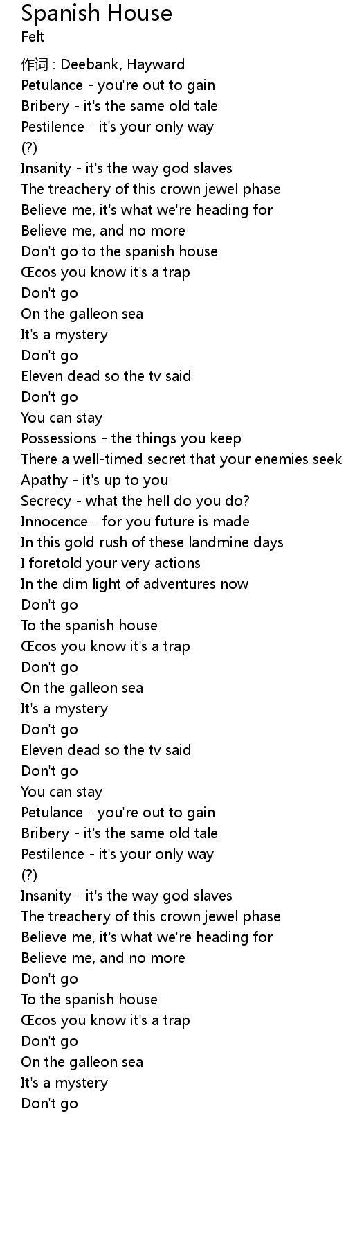 | Don' t go to the spanish house | |