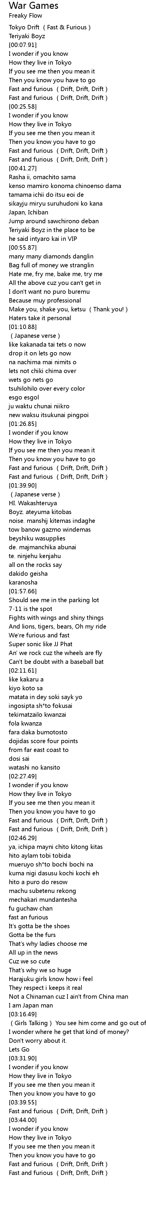 | [02:39.29] | Fast and furious Drift, Drift, Drift |