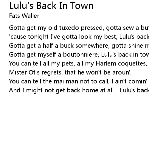 | 歌曲 | Lulu's Back In Town |