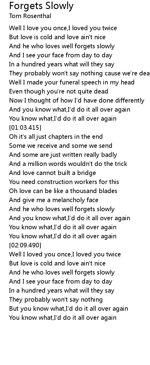 And he who loves well forgets slowly |