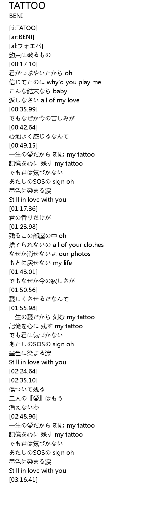 | [01:59.01] | 一生の愛だから 刻む my tattoo |