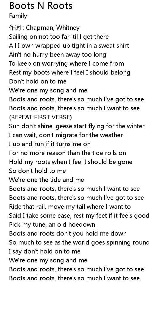 | Boots and roots, there' s so much I' ve got to see | |