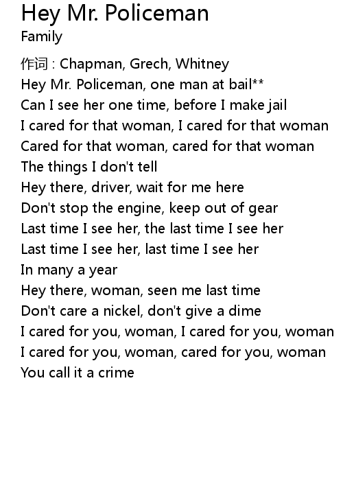 | 歌曲 | Hey Mr. Policeman |