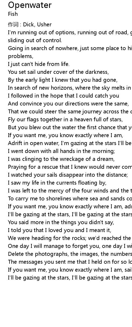 | Adrift in open water, I' m gazing at the stars I' ll be gazing at the stars. | |