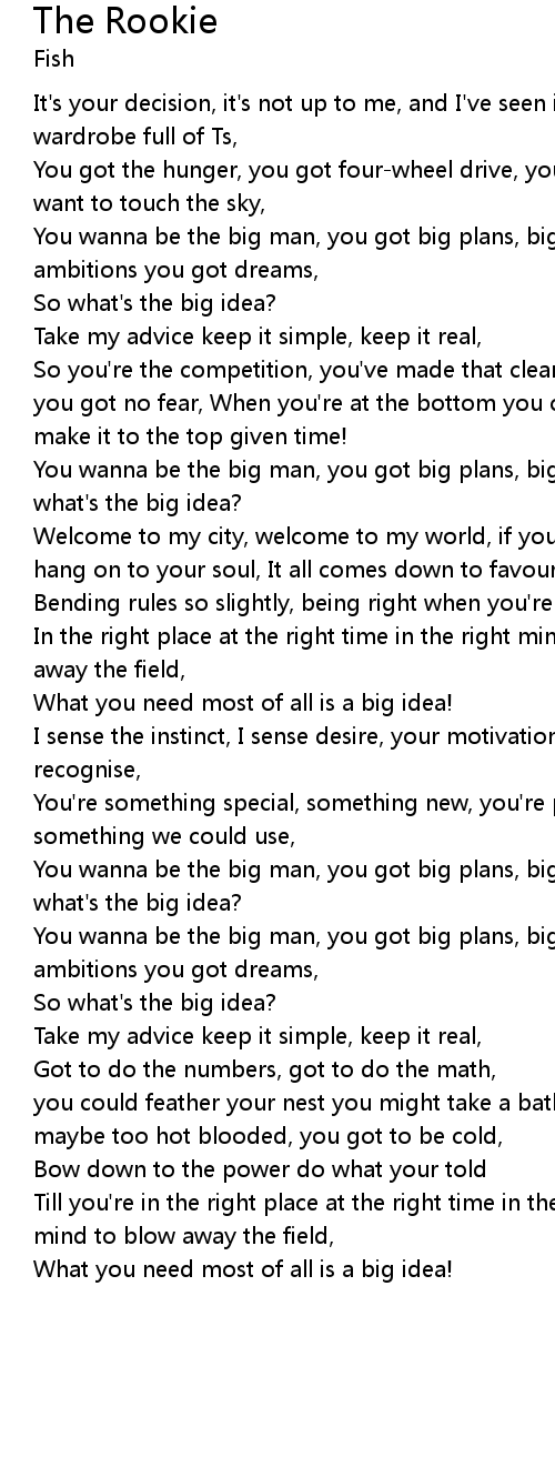 You wanna be the big man, you got big plans, big ambitions you got dreams, So what's the big idea? |