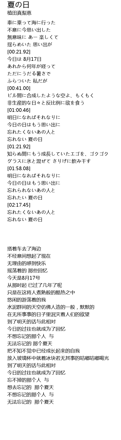 | [02:12.63] | 想去忘记的 那个夏天 |