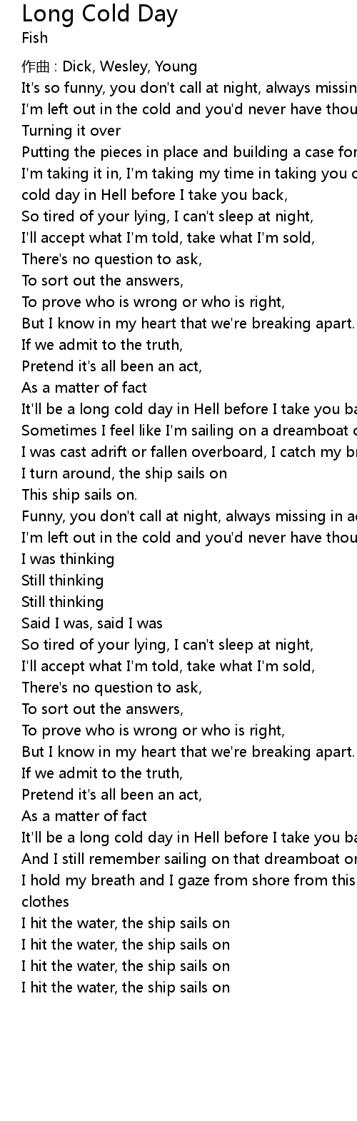 | 歌曲 | Long Cold Day |