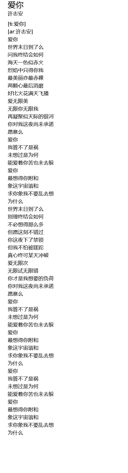 | [00:01.74] | 爱你 |