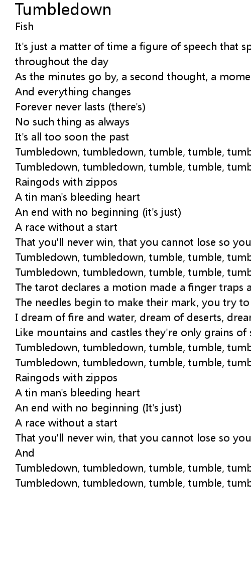 Tumbledown, tumbledown, tumble, tumble, tumbledown |