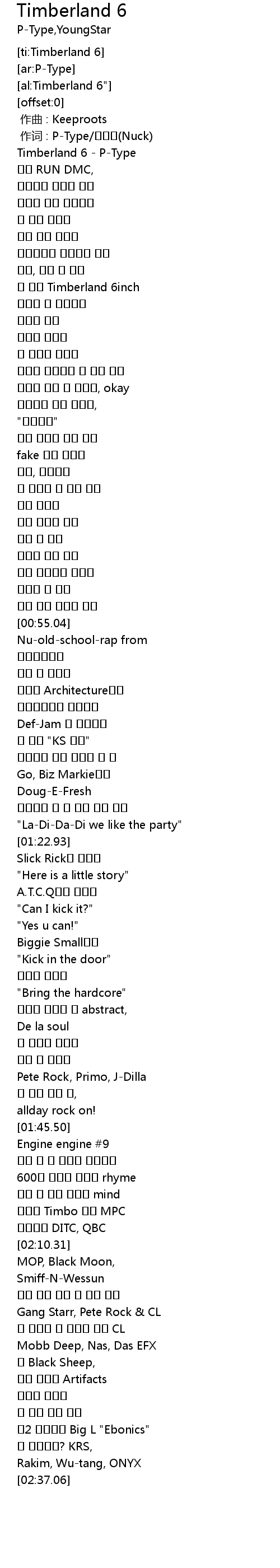 | [00:00.27] | Timberland 6 - P-Type |