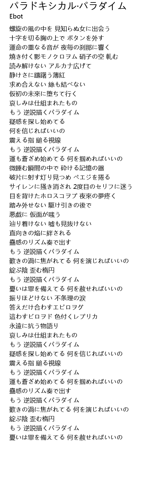 | [03:26.28] | 綻ぶ陰 歪む楕円 |