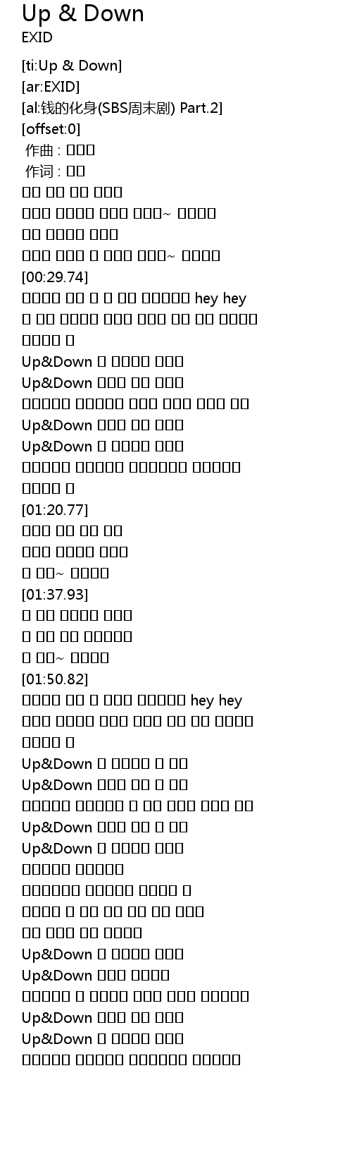 | [02:12.53] | Up&Down 자꾸만 변해 왜 이래 |