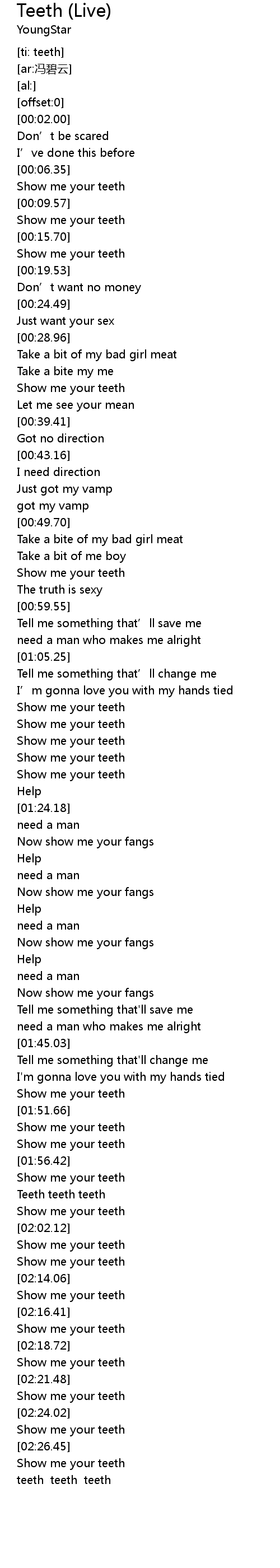 | [02:28.78] | teeth teeth teeth |