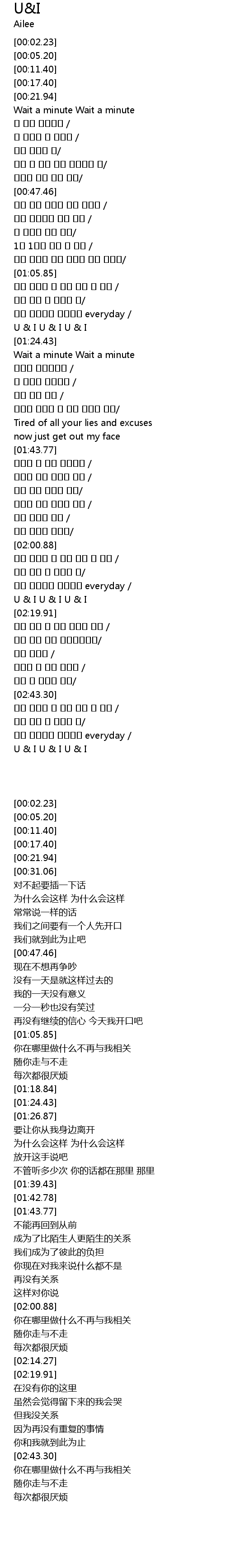 | [02:14.27] | U & I U & I U & I |