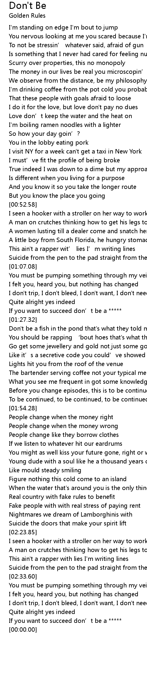 | [02:49.82] | If you want to succeed don’t be a ***** |