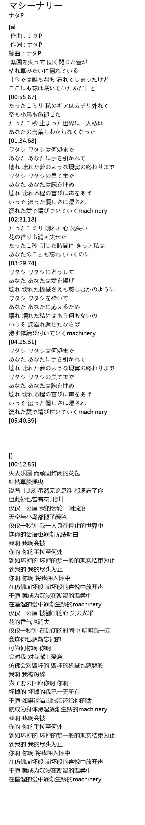 | [02:23.16] | 在濡湿的爱中逐渐生锈的machinery |