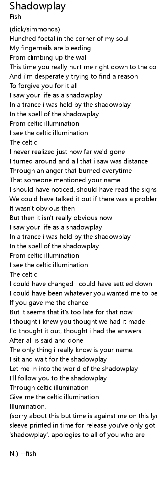 (sorry about this but time is against me on this lyric and in order to get this sleeve printed in time for release you've only got half the lyric to 'shadowplay'. apologies to all of you who are