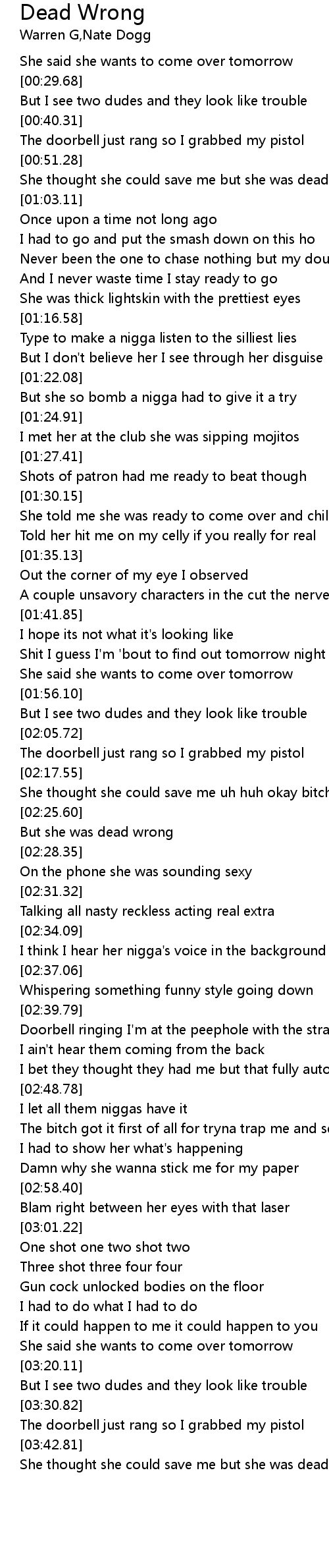 | [01:38.80] | A couple unsavory characters in the cut the nerve of this bitch |