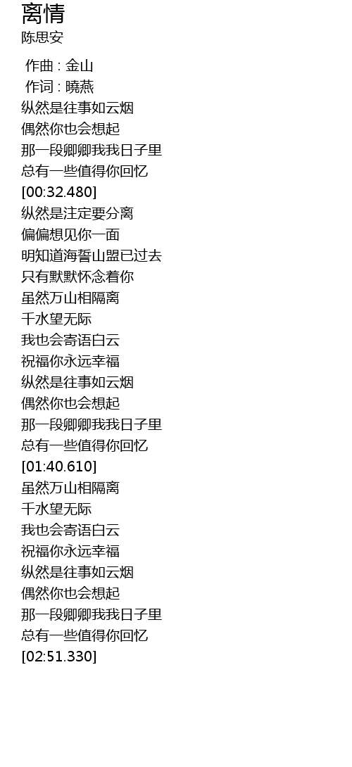 | [02:26.670] | 纵然是往事如云烟 |