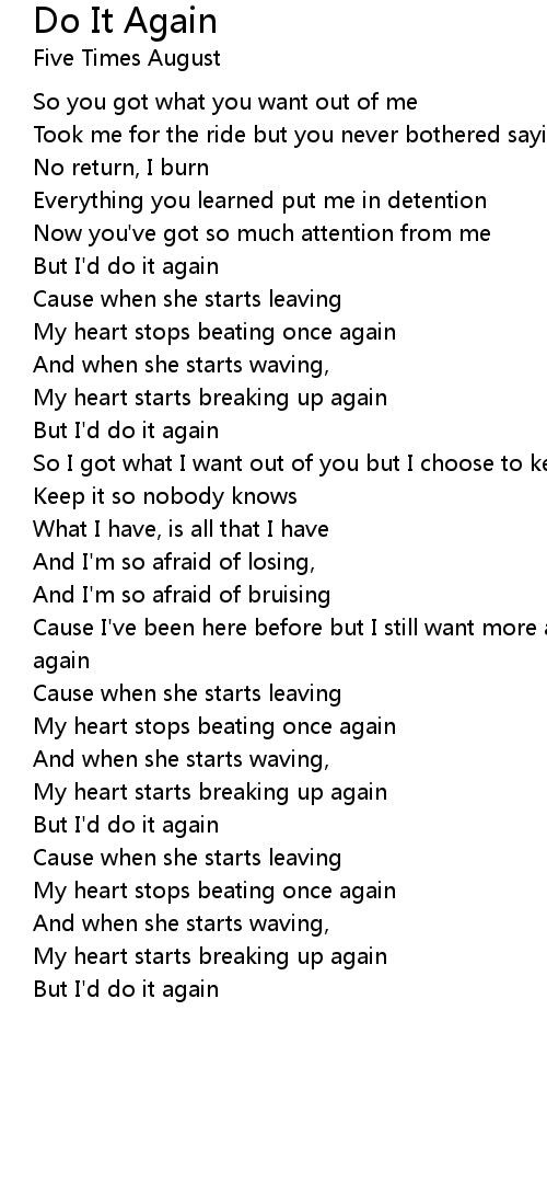 Cause I've been here before but I still want more and I'd do it again, I'd do it again |