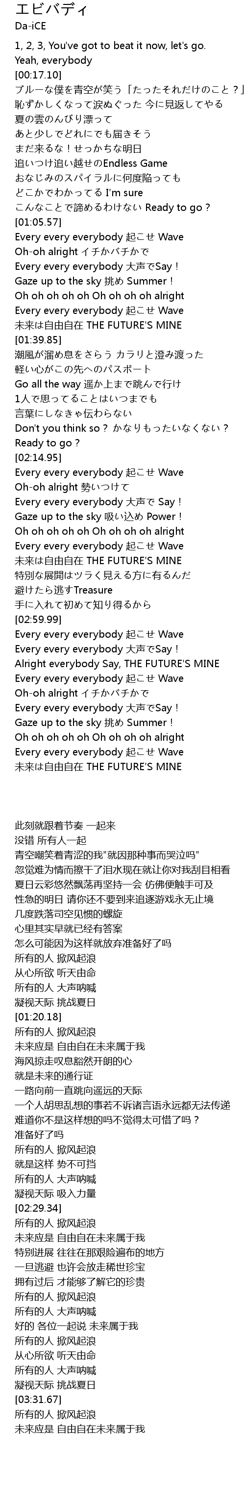 | [03:24.39] | Every every everybody dà shēng Say! |