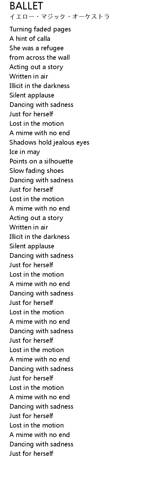 | [04:19.74] | A mime with no end |