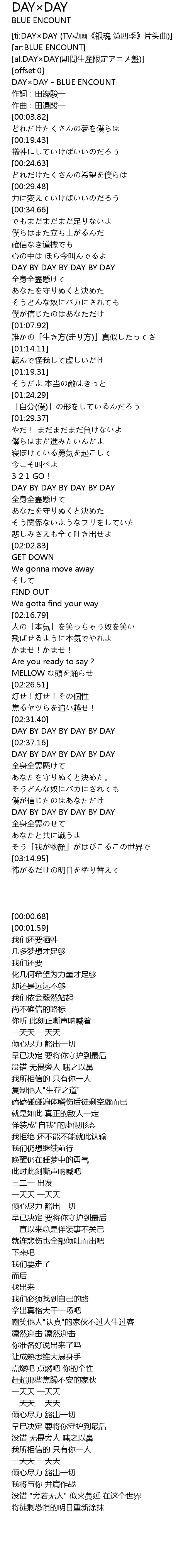 | [00:00.68] | DAY×DAY - BLUE ENCOUNT |