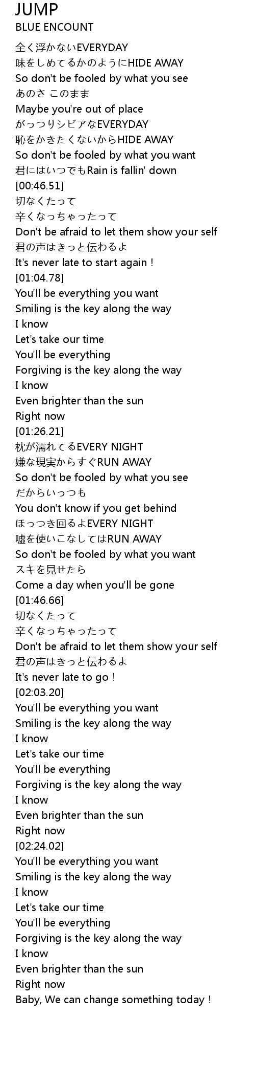 | [01:38.77] | 嘘を使いこなしてはRUN AWAY |