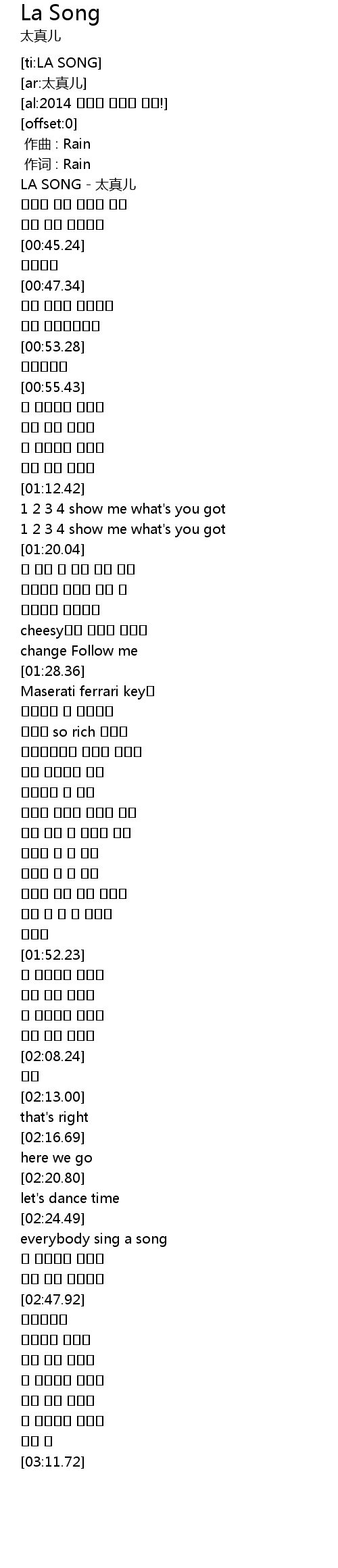 | [01:12.95] | 1 2 3 4 show me what' s you got |