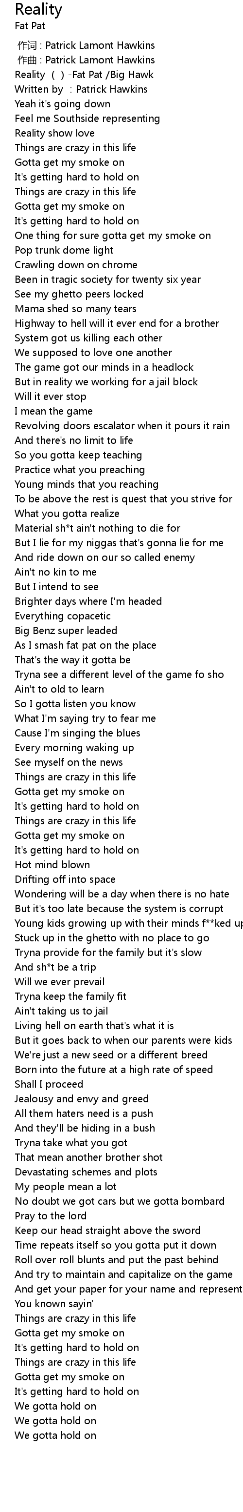 | [00:00.00] | Reality Fat Pat Big Hawk |